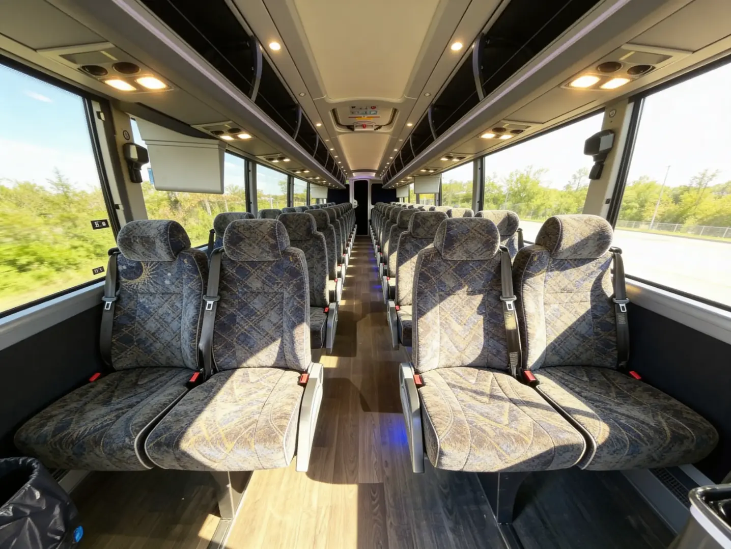 If you need a bus company in Kearny, we can help! From sprinter vans to full-size charter buses, our vehicles come with premium amenities that make every mile more comfortable. Enjoy high-speed WiFi, power outlets at every seat, and LED lighting to keep the energy up. You'll get plush, reclining seats, powerful climate control, and on-board restrooms (available on select larger vehicles) to cut down on unscheduled stops. We've got options with overhead monitors, PA systems, and even self-serve wet bars for entertainment, plus secure luggage storage above and below the cabin to keep aisles clear.